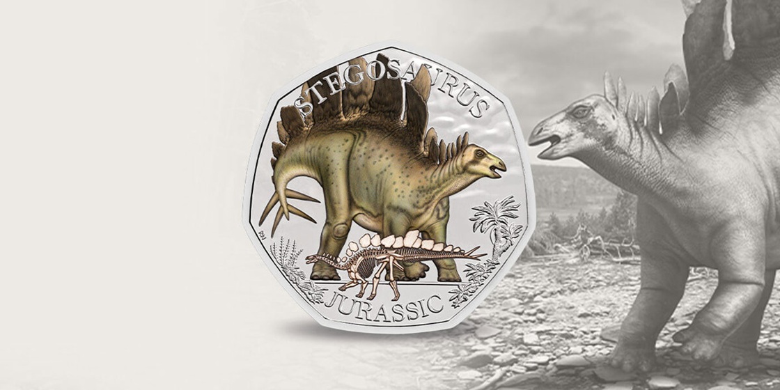 Enrichissez votre patrimoine numismatique avec la collection de monnaies créée pour le Royaume-Uni en 2024 (par la Monnaie Royale britannique (Royal Mint)), dédiée au stégosaure.