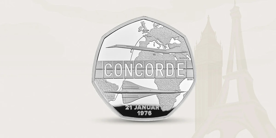 Enrichissez votre patrimoine numismatique avec la collection de monnaies créée pour le Royaume-Uni en 2026 (par la Monnaie Royale britannique (Royal Mint)), dédiée au Concorde.