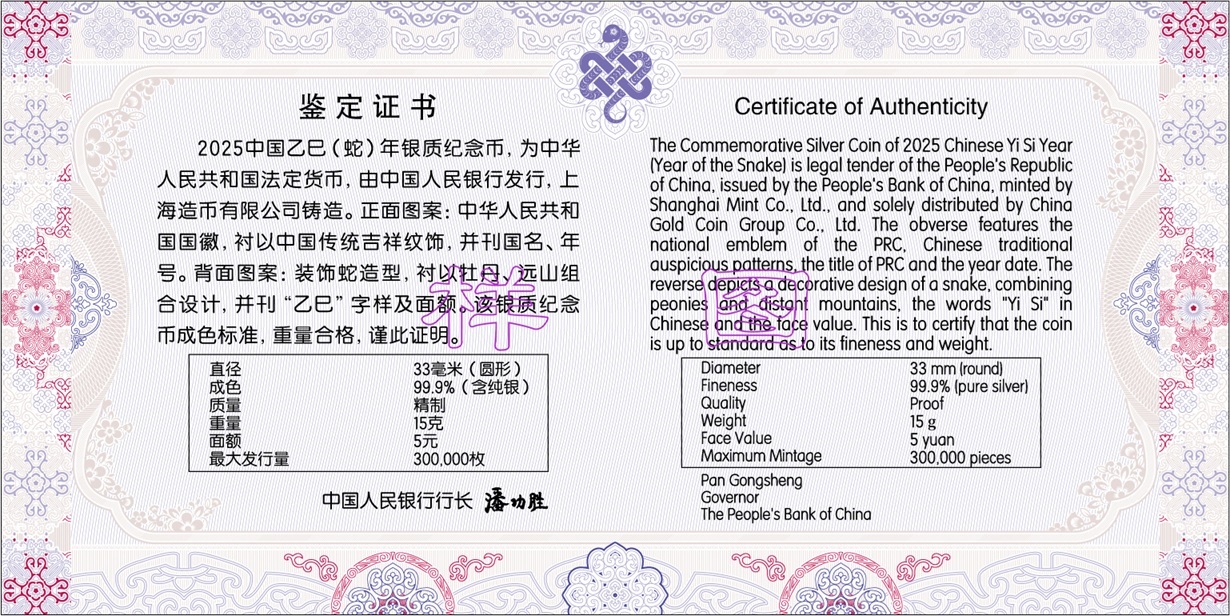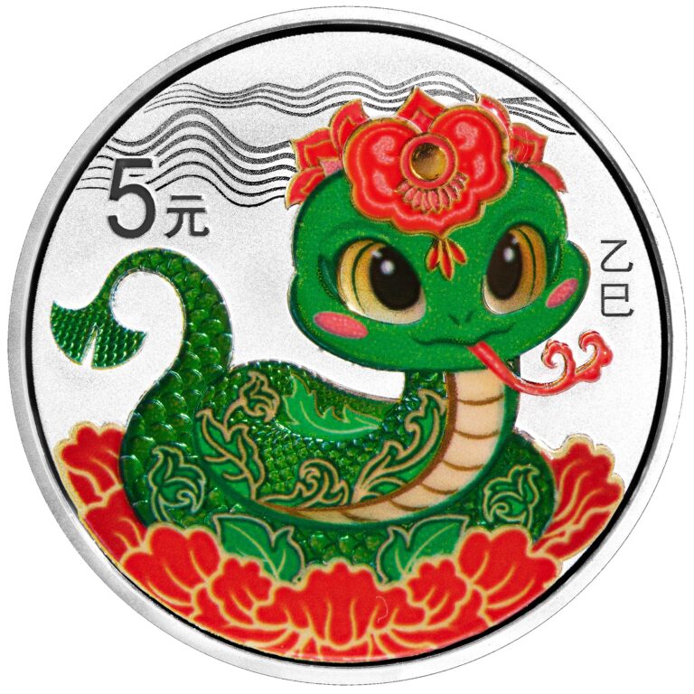 Cette pièce, qui célèbre l’Année lunaire du Serpent, fait partie d’une série numismatique consacrée aux signes du calendrier lunaire chinois.