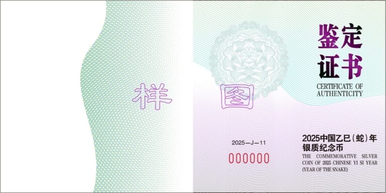 Pièce de monnaie de collection d’une valeur faciale de 5 Yuan, en argent, émise pour la Chine en 2025, dans la qualité BE (Belle Epreuve), par la Banque populaire de Chine (People’s Bank of China, en chinois 中国人民银行, prononcé Zhōngguó rénmíng yínháng), dans l’atelier de Shanghai Mint Co., Ltd, et distribuée par China Gold Coin Group Co., Ltd.