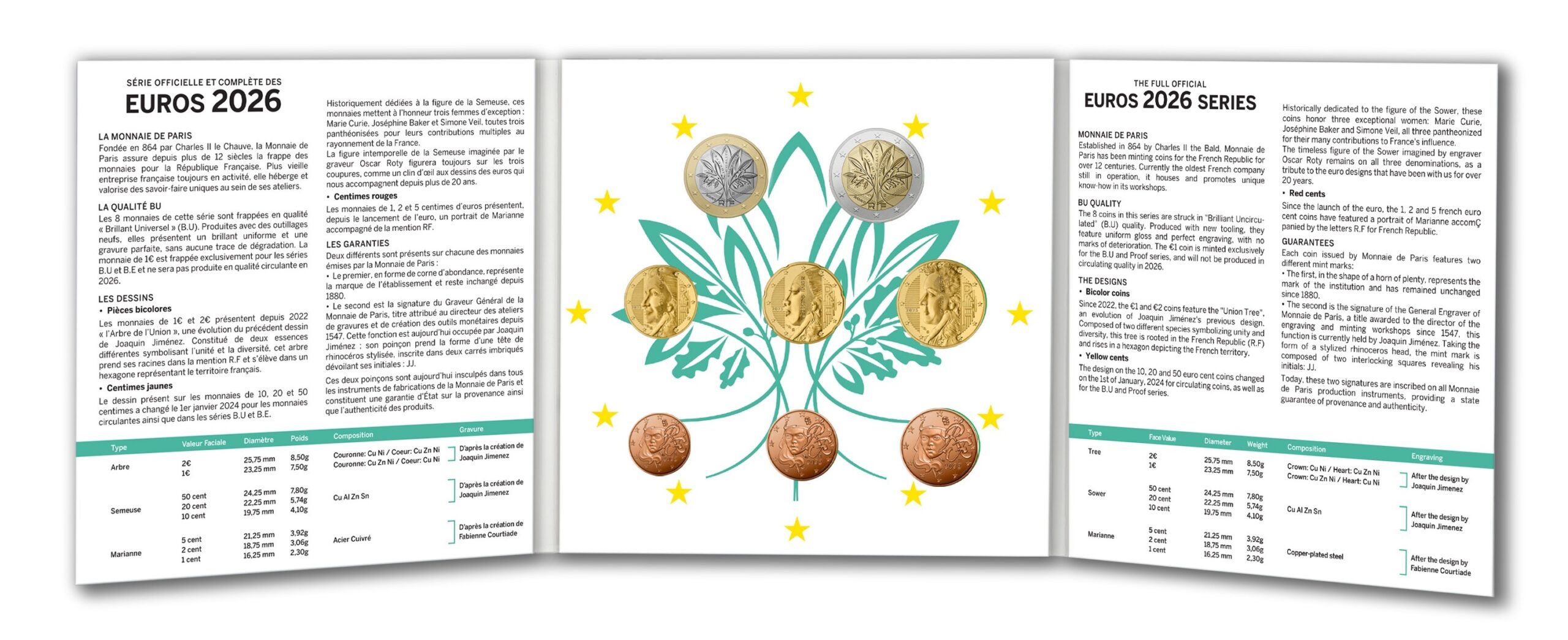 Coffret monétaire édité pour la France en 2026, dans la qualité BU (Brillant Universel), par la Monnaie de Paris.