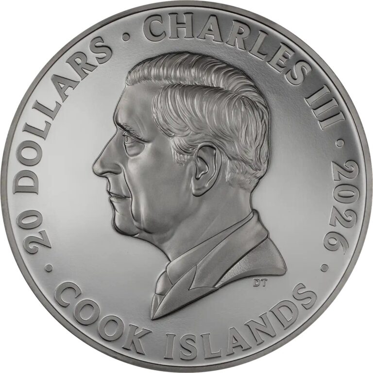 Pièce de monnaie de collection d’une valeur faciale de 20 Dollars, en argent, émise pour les Iles Cook en 2026, dans la qualité BE (Belle Epreuve) noir.