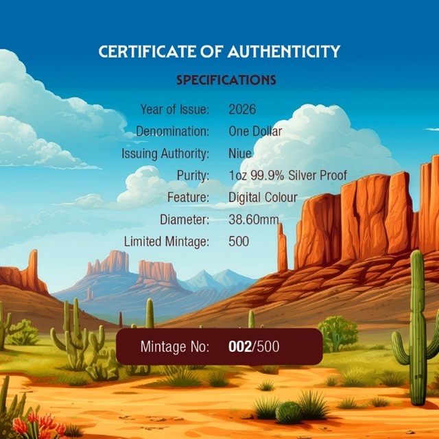 Pièce de monnaie de semi-investissement d’une valeur faciale de One Dollar (en français Un Dollar), en argent, émise pour Niue en 2026, dans la qualité BE (Belle Epreuve).