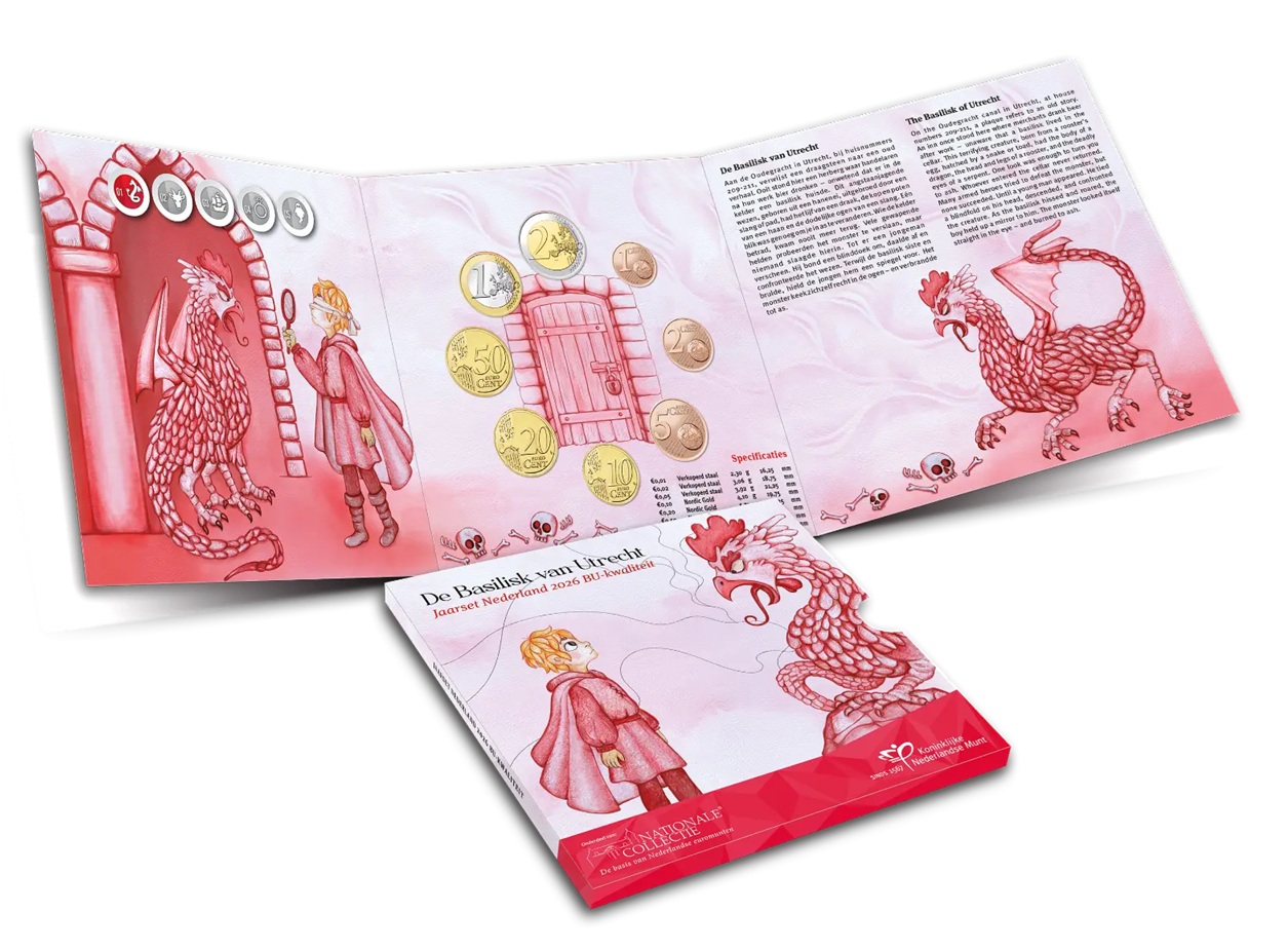 Dédié à la créature nommée Basilic d’Utrecht, ce coffret fait partie d’une série numismatique consacrée aux mythes et contes populaires néerlandais.